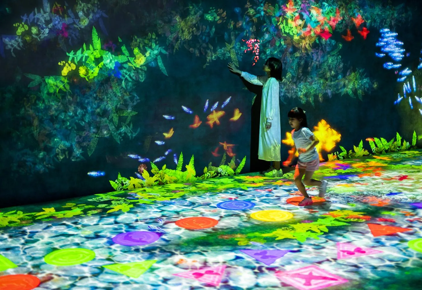 teamLab, 2020-, Interactive Digital Installation, Sound: Hideaki Takahashi
