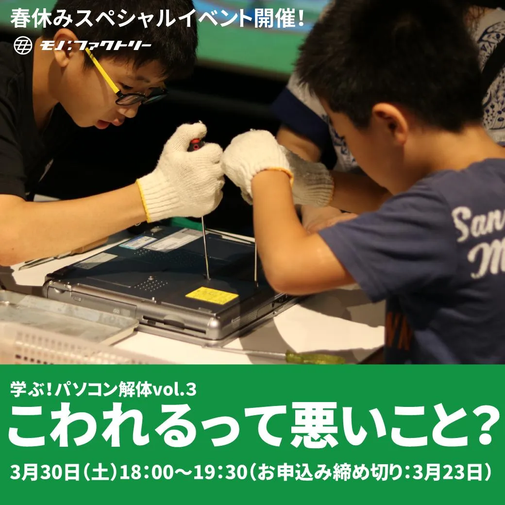 ※こちらのイベントは、キャンセル待ちを含め応募を締め切らせていただきました。「物を壊しちゃだめ!」「物は大事に使いなさい」お家や学校でこんなふうに言われたことが、一度や二度(あるいはそれ以上)あるので...