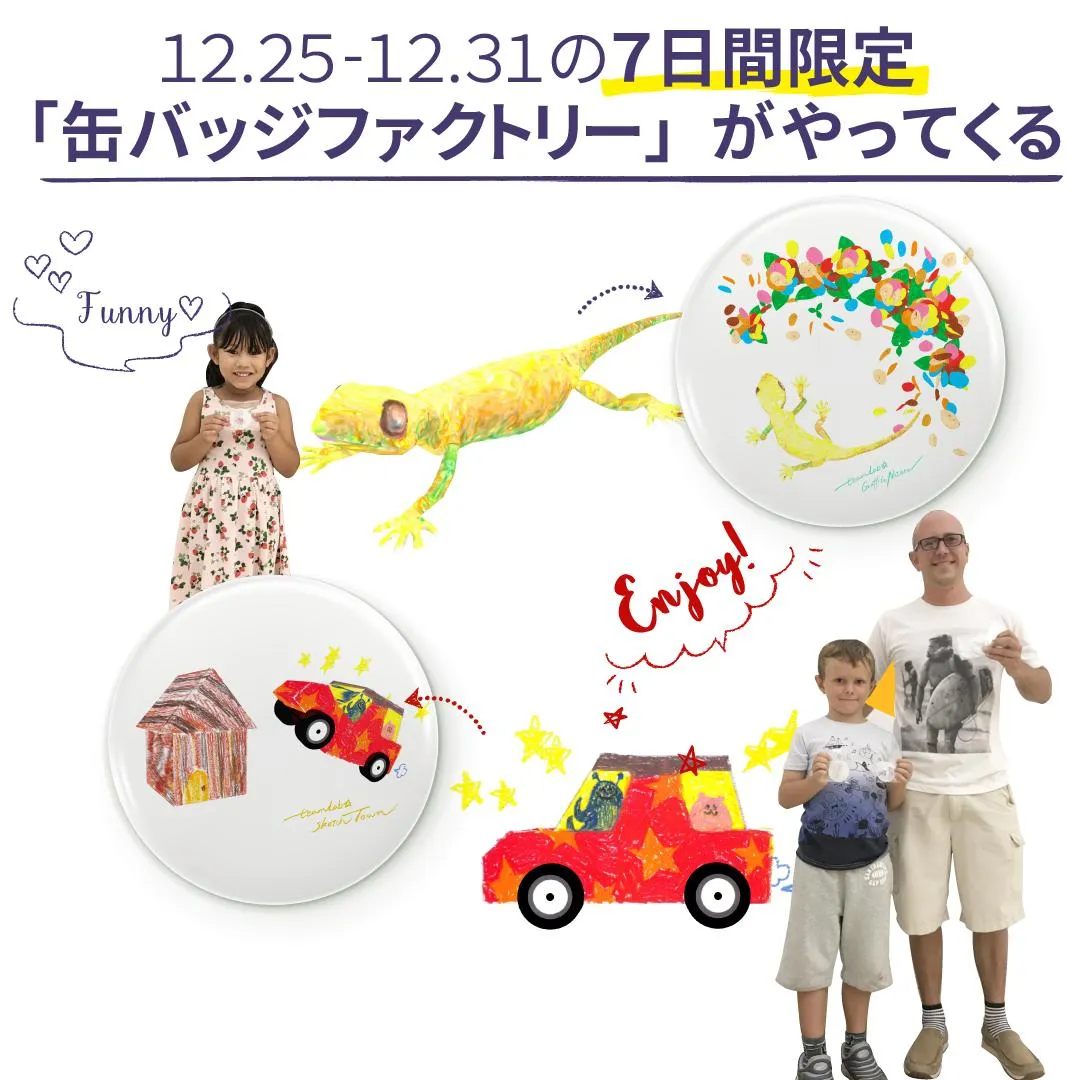 ”チームラボ 学ぶ!未来の遊園地ららぽーと湘南平塚店”では、12月25日〜12月31日の期間限定で、「缶バッジファクトリー」を開催いたします。「グラフィティネイチャー」と「お絵かきタウン」で描いた絵の...