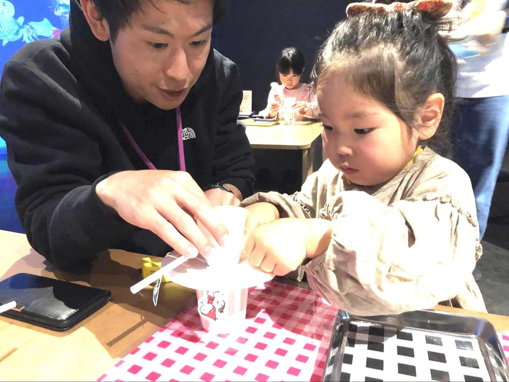 「チームラボ 学ぶ!未来の遊園地 キャナルシティ博多店」では、11月の平日に、小人がくるくるまわるメリーゴーランドを作るワークショップを開催しました。今回使用するのは紙コップと紙皿、それに曲がるストロ...
