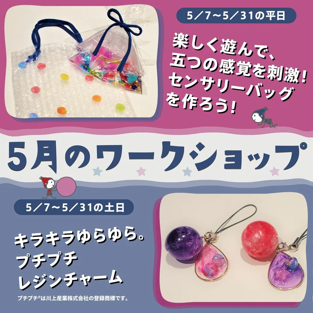 「チームラボ 学ぶ!未来の遊園地」では、毎月ワークショップを開催しています。5月のワークショップは「プチプチ®」を使用したワークショップです。平日限定:楽しく遊んで、五つの感覚を刺激!センサリーバッグ...