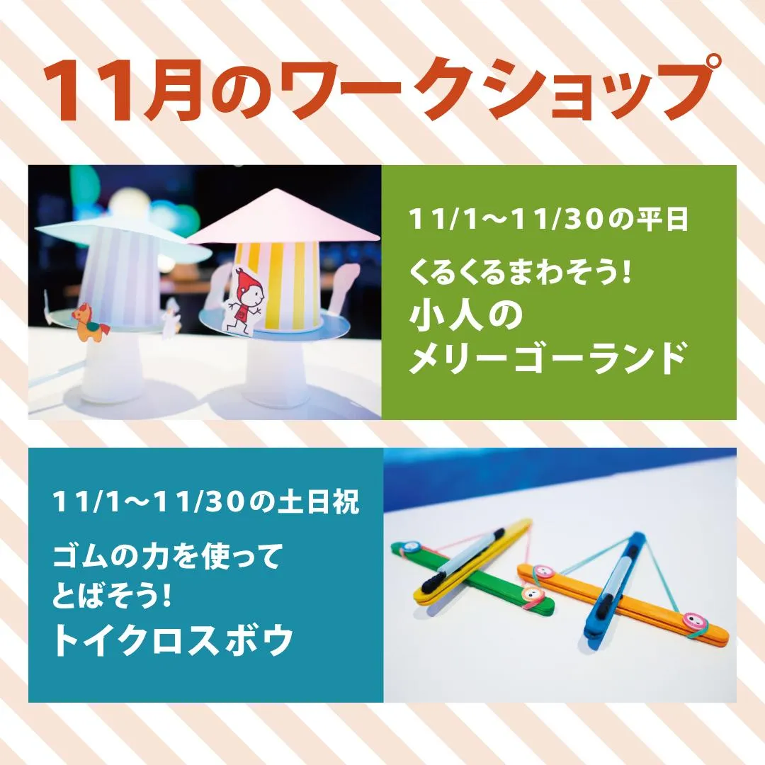 「チームラボ 学ぶ!未来の遊園地」では、月替わりでワークショップを開催しています!平日と休日で、それぞれ11月限定の内容となっています!平日は・・・くるくる回そう!小人のメリーゴーランド小人たちがくる...