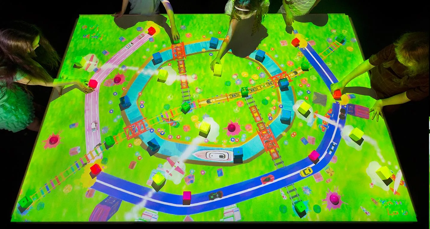teamLab, 2013-, Interactive Digital Installation, Wooden blocks, Sound: Hideaki Takahashi