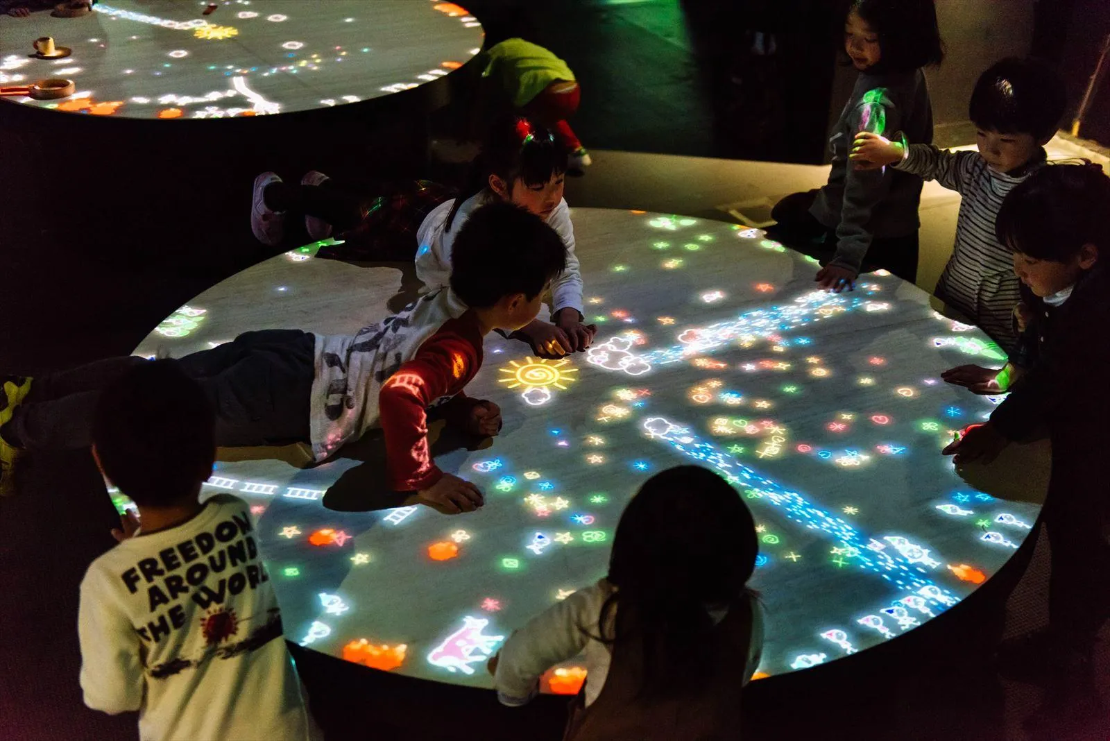 เมื่อฉายภาพเหล่ามนุษย์จิ๋ว วัวจิ๋ว ดวงดาวจิ๋ว พระอาทิตย์จิ๋ว ลงบนโต๊ะ มันจะวิ่งวนไปมา โดยผู้เล่น สามารถเล่นสนุกกับพวกมันได้ ด้วยการใช้อุปกรณ์ที่มีในโซนนี้ หรือสามารถใช้อวัยวะในร่างกาย เช่น มือ แขน หรือแม้แต่วัตถุที่ติดตัวมาวางกั้นเส้นทาง ซึ่งจะทำให้การเคลื่อนไหวมนุษย์จิ๋ว วัวจิ๋ว ดวงดาวจิ๋ว พระอาทิตย์จิ๋ว เหล่านั้นเปลี่ยนไป เช่น มนุษย์จิ๋วจะกระโดด ปีน หรือไถลตัวบนสิ่งที่เราใช้กั้น เป็นต้น