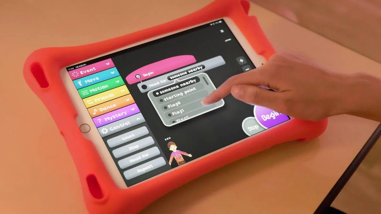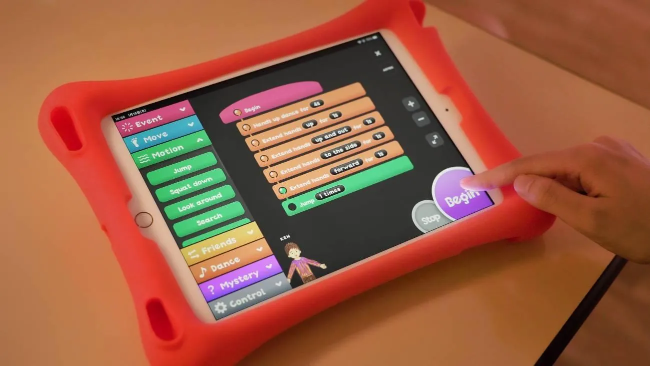 Programs are made by combining blocks, so children can learn programming intuitively whilst playing.